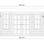 External doors x1 – 1610x1920mm double glassed (wooden or PVC)